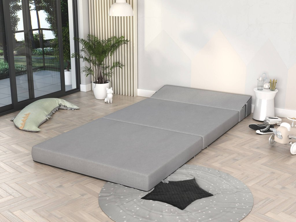 Skládací matrace jsou univerzální a přenosnou alternativou tradičních matrací. Jsou speciálně navrženy pro snadné skladování a přepravu, takže jsou ideální pro osoby s omezeným prostorem nebo pro ty, kteří často cestují. Na rozdíl od běžných matrací lze skládací matrace složit do kompaktních rozměrů, což je velmi výhodné, když je chcete mít mimo dohled nebo ušetřit místo. Vlastností, která skládací matrace odlišuje, je jejich charakteristická trojskladná nebo dvojskladná konstrukce, která umožňuje jejich složení do mnohem menších rozměrů. Co se týče materiálů, skládací matrace jsou obvykle vyrobeny z pevného, hustého pěnového jádra pro oporu, které je z vnější strany pokryto měkčí pěnou nebo látkou pro pohodlí. Vnější povrch je často vyroben z odolného, pružného materiálu, jako je polyester nebo bavlna, aby vydržel opotřebení. Pěna je u skládacích matrací oblíbená, protože je dostatečně pružná, aby se dala snadno složit, a zároveň poskytuje dostatečnou oporu v rozloženém stavu. Součástí balení je obvykle polyesterový potah, který pěnu chrání a který lze snadno sejmout pro čištění. Skládací matrace slouží nejen jako plocha na spaní; podle potřeby je lze použít také jako pohovku na podlahu nebo křeslo do obývacího pokoje. Poskytují pohodlí, flexibilitu a komfort v jednom.